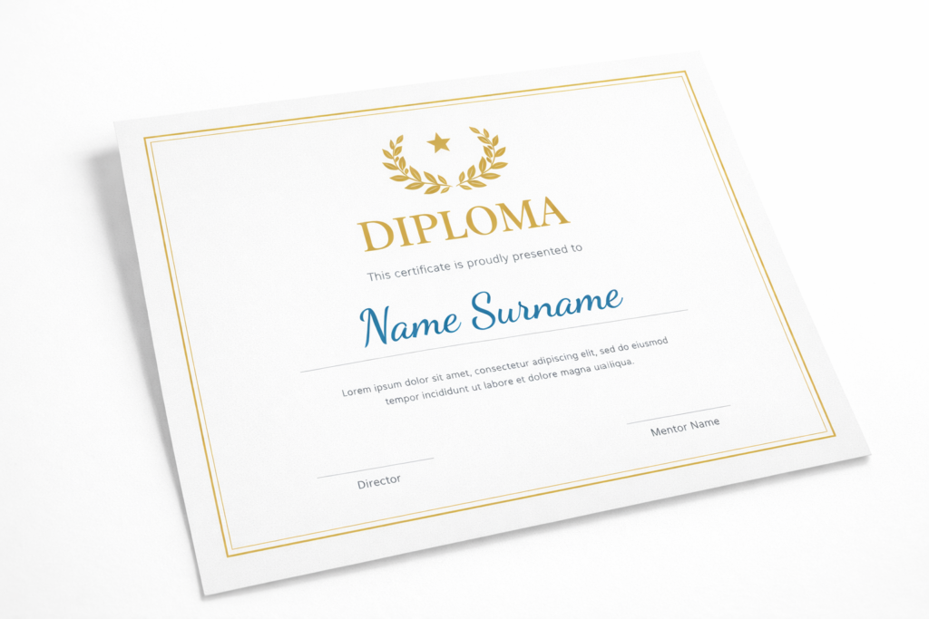 Gaminame diplomus ir sertifikatus, skirtus mokymams, kursams, konkursams, renginiams ar įmonių vidinėms programoms. Tai patikimas būdas profesionaliai įforminti pasiekimus, įvertinti darbuotojus, partnerius ar dalyvius bei sustiprinti organizacijos įvaizdį.