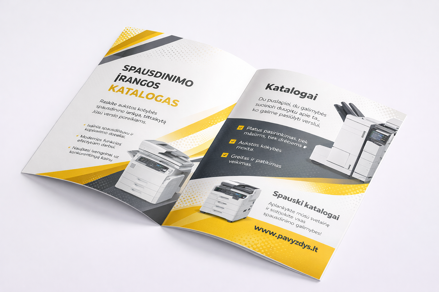 Šie leidiniai puikiai tinka parodoms, pardavimų susitikimams, klientų informavimui ar vidaus komunikacijai. Profesionaliai pagamintas katalogas ar žurnalas padeda aiškiai pristatyti asortimentą, kainas, techninę informaciją bei sustiprina Jūsų įmonės vizualinį identitetą.